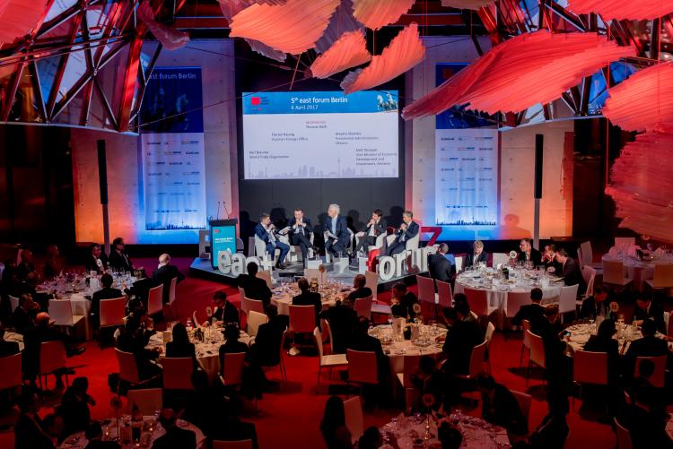 Das east forum Berlin wurde vom Ost-Ausschuss der Deutschen Wirtschaft, der UniCredit und der METRO AG Wholesale & Food Specialist Company organisiert. Als Kooperationspartner waren der Bundesverband der Deutschen Industrie (BDI), der Deutsche Industrie- und Handelskammertag (DIHK) und Schaeffler Technologies mit dabei. Rund 20 Länder waren auf Minister- oder Botschafter-Ebene beim 5. east forum Berlin vertreten. Wie schon im vergangenen Jahr, unterstützte die Konferenz die Connectivity-Agenda der OSZE, diesmal unter österreichischem Vorsitz.
