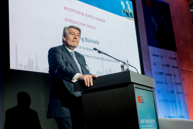 Am 6. April 2017 diskutierten anlässlich des 5. east forum Berlin über 300 internationale Teilnehmer über Wege zu einem gemeinsamen Wirtschaftsraum in Europa und Eurasien. Der stellvertretende WTO-Generaldirektor Karl Brauner plädierte dabei leidenschaftlich für die Akzeptanz internationaler Handelsregeln und Schiedsgerichtsverfahren. Sollten die USA unter der neuen Administration die Autorität der Welthandelsorganisation (WTO) in Frage stellen, wie dies angekündigt worden sei, könnte das gesamte Welthandelssystem vor dem Kollaps stehen. Bislang würden Urteile in WTO-Schiedsgerichtsverfahren, die in Genf verhandelt werden, zu 95 Prozent akzeptiert und umgesetzt. Sollten die USA aus diesem System ausscheiden, würde dies die Autorität des Gerichts untergraben. Andere Länder könnten folgen, mit gewaltigen Schäden für das Welthandelssystem. Unterstützung erhielt Brauner durch den Ost-Ausschuss-Vorsitzenden Wolfgang Büchele. Dieser warnte davor, internationale Institutionen wie die EU und die WTO in Frage zu stellen und auf nationale Alleingänge und Protektionismus zu setzen: "Die Schwäche der EU und WTO von heute, wären die Handelskriege von morgen.”