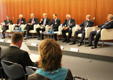 In weiteren Diskussionsrunden am Nachmittag wurden besonders attraktive Sektoren der ukrainischen Wirtschaft genauer betrachtet. Dazu zählten die Branchen Energie, Transport und Logistik, IT, Landwirtschaft und Ernährungsindustrie. Zum Landwirtschaftspanel konnte Ost-Ausschuss-Geschäftsführer Rainer Lindner als Moderator unter anderen den ukrainischen Landwirtschaftsminister Oleksiy Pavlenko und den Parlamentarischen Staatssekretär im Bundeslandwirtschaftsministerium Peter Bleser begrüßen. Die Ukraine verfügt über die weltweit fruchtbarsten Böden und gehört zu den weltgrößten Weizenexporteuren. 14 Prozent trägt der Sektor bereits zum ukrainischen Bruttoinlandsprodukt bei. Vor allem das Agrobusiness und die daran gekoppelten Wertschöpfungsketten gelten daher als Trumpfkarte der Ukraine bei dem Versuch, sich wirtschaftlich zu erholen.