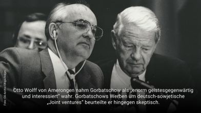 Die wirtschaftlichen Reformversuche in der Sowjetunion führten ab 1985 auch zu historischen Begegnungen Gorbatschows mit Vertretern des Ost-Ausschusses der Deutschen Wirtschaft. Unter anderem warb Gorbatschow in einer wegweisenden Rede am 13. Juni 1989 im Ost-Ausschuss in Köln für eine politische und wirtschaftliche Überwindung der Teilung Europas und beschrieb die großen Chancen einer intensivierten Wirtschaftszusammenarbeit zwischen der Bundesrepublik und der Sowjetunion. Gorbatschow erwähnte die Schiffbauindustrie, die Luftfahrt, warb für gemeinsame Rohstoffförderprojekte, transkontinentale Hochgeschwindigkeitseisenbahnen, gemeinsame Kabelnetze und kosmische Kommunikationsmittel. „Die Sowjetunion bietet ihre Leistungen beim Transport westdeutscher Satelliten auf Umlaufbahnen und bei gemeinsamen Forschungs- und Industrieproduktionen zu günstigen kommerziellen Bedingungen an.“ Manches blieb bis heute Vision, einiges wurde aber tatsächlich ab den 1990er Jahren umgesetzt. Seine Rede verband Gorbatschow mit einem Appell an die deutsche Wirtschaft, sich aktiv für die Überwindung von Grenzen einzusetzen: „Das Konzept des gesamteuropäischen Hauses ist, meiner Überzeugung nach, der aussichtsreichste Weg der allmählichen Überwindung der Spaltung Europas. Ich glaube, dass auch Sie, die Kapitäne der westdeutschen Wirtschaft, darüber nachdenken sollten, denn wie alle Deutsche spüren Sie selbst besonders schmerzhaft die Folgen der Spaltung.“