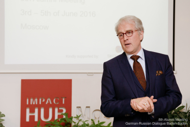 In seiner Begrüßungsrede betonte Botschafter von Fritsch die Wichtigkeit solcher Veranstaltungen wie der Deutsch-Russischen Gespräche Baden-Baden in politisch angespannten Zeiten, wie es gegenwärtig zwischen der EU und Russland der Fall sei. Es wurde unterstrichen, dass Deutschland und Russland eine feste Grundlage für ihre Zusammenarbeit haben, die sich auf kulturelle, wirtschaftliche, historische und gesellschaftliche Beziehungen stützt. In der langfristigen Perspektive würden beide Länder aufgrund dieser Beziehungen neue Strategien entwickeln. Fundamente der Kooperation sollten jedoch Vertrauen und Rechtsstaatlichkeit sein.