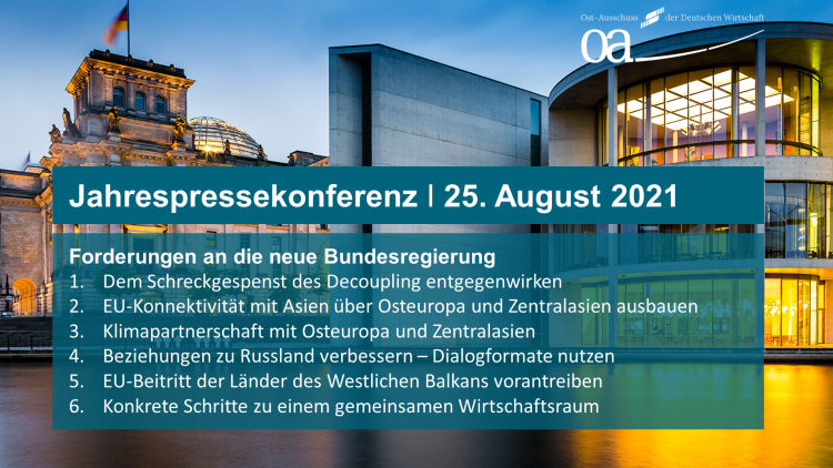 Ost-Ausschuss-Vorsitzender Oliver Hermes präsentiert sechs Kernforderungen an die künftige Bundesregierung / Konnektivität und Klimazusammenarbeit mit Osteuropa und Zentralasien stärken
