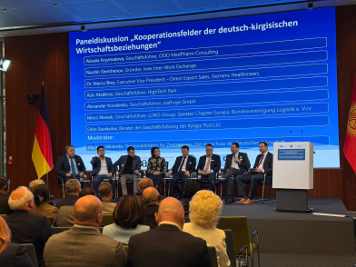 „Zentralasien steht im Fokus der deutschen Politik und Wirtschaft“, betonte Michael Harms, Geschäftsführer des Ost-Ausschusses. Kirgisistan spiele dabei als dynamisch wachsende Volkswirtschaft eine Rolle. Das Land habe sich als touristisches Ziel und bedeutender Rohstofflieferant etabliert. Auch der boomende Bausektor und die wachsende Infrastruktur machten Kirgisistan für Investoren attraktiv.