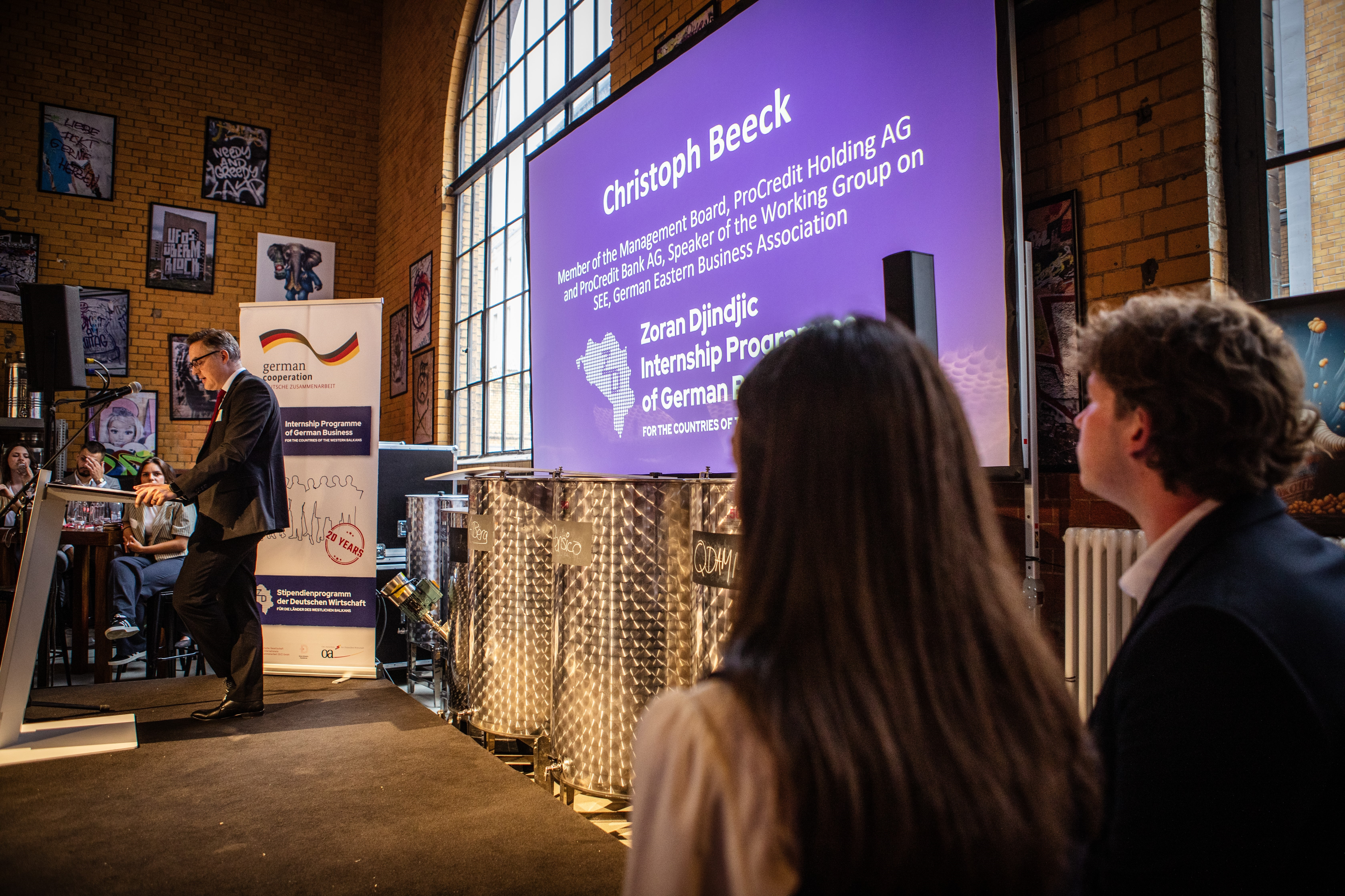 Sofija aus Belgrad ist das erste Mal in Berlin und steht an diesem Abend gleich im Mittelpunkt – zusammen mit über 50 weiteren jungen Berufsanfängern der 22. Generation des Stipendienprogramms der Deutschen Wirtschaft. Wie jedes Jahr werden die jungen Nachwuchskräfte aus Kroatien, Serbien, Bosnien und Herzegowina, Kosovo, Albanien, Montenegro und Nordmazedonien im Rahmen ihrer Einführungswoche in Berlin vom Ost-Ausschuss und vielen teilnehmenden Unternehmen feierlich empfangen, bevor sie Anfang Juli ihre Praktika in Unternehmen in Deutschland antreten.