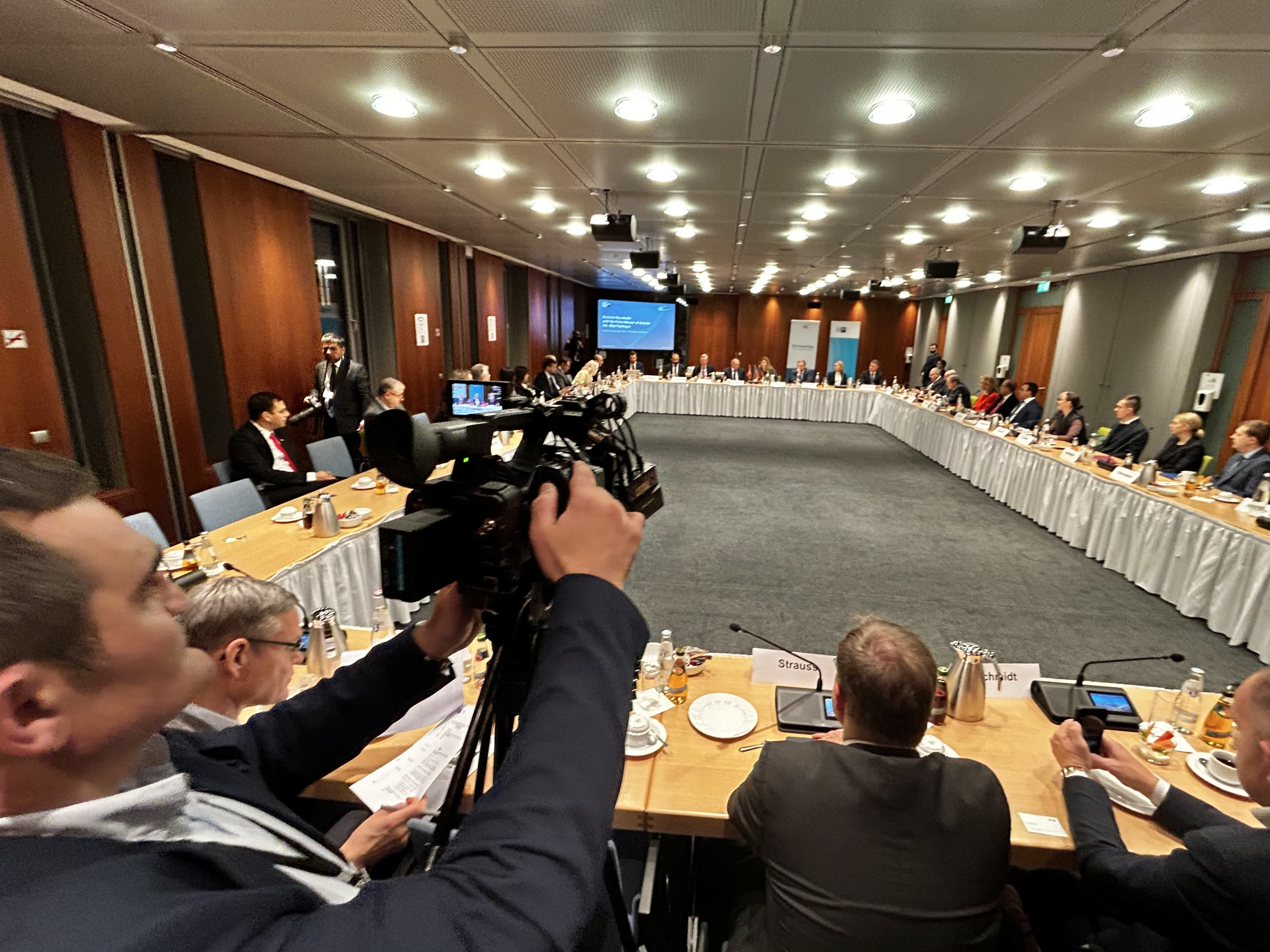 Beim Unternehmergespräch am 9. Dezember im Berliner Haus der Deutschen Wirtschaft präsentierte Armeniens Premierminister Nikol Paschinyan sein Land als aufstrebenden Wirtschaftsstandort im Südkaukasus. Rund 40 Unternehmen sowie eine hochrangige armenische Delegation, zu der auch Wirtschaftsminister Gevorg Papoyan gehörte, diskutierten Perspektiven in Schlüsselbereichen wie Logistik, Maschinenbau, IT/Hightech, Energie, Wasserwirtschaft, Infrastruktur und Agrarwirtschaft.