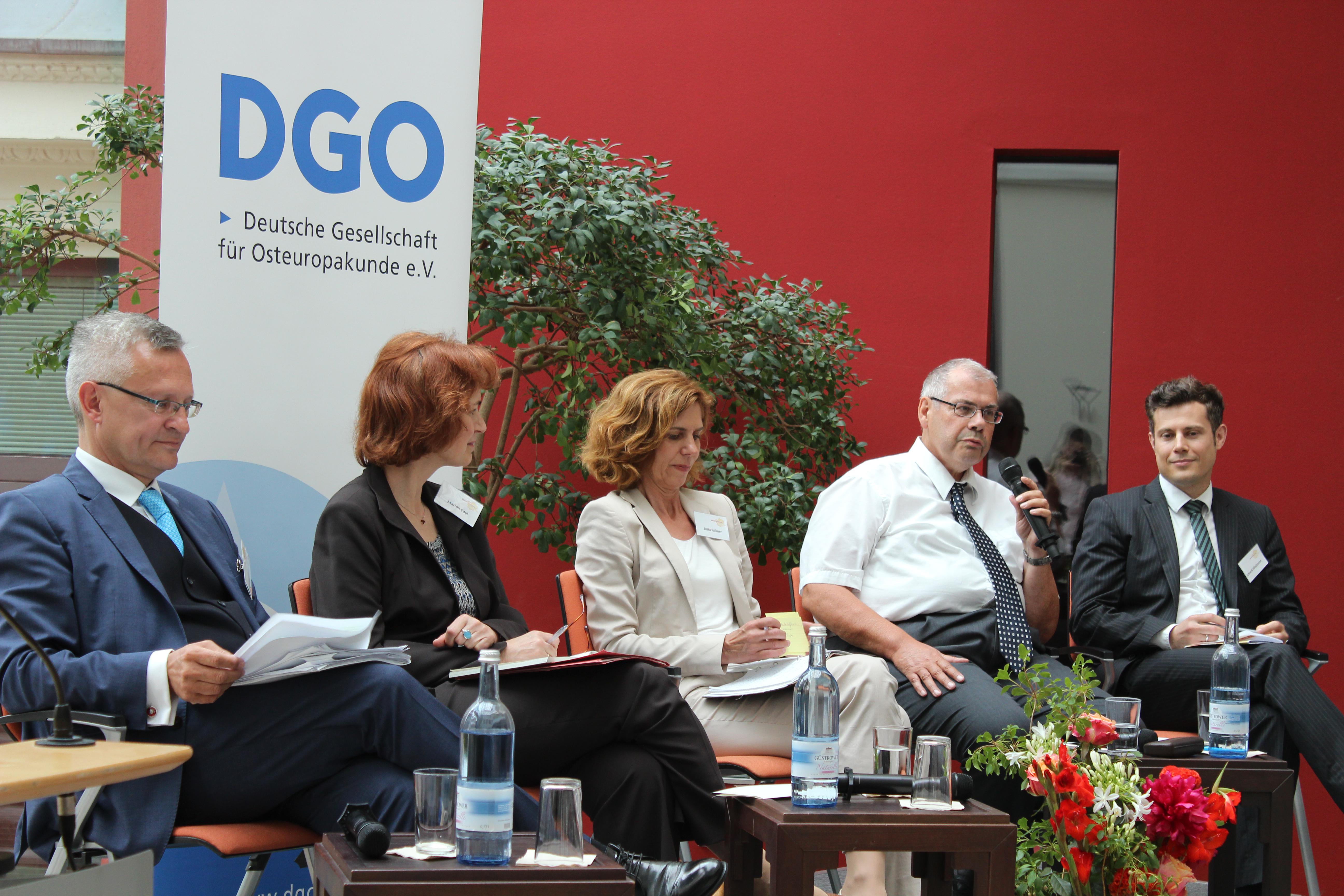 Anlässlich des Erscheinens der 100. Ausgabe der Zentralasien-Analysen veranstaltete die Deutsche Gesellschaft für Osteuropakunde (DGO) am 31. Mai 2016 in Berlin die Tagung „Deutschland und Zentralasien: Interessen und Erwartungen“ statt. Ein Panel, an dem der Regionaldirektor für Zentralasien im Ost-Ausschuss Eduard Kinsbruner teilnahm, befasste sich mit dem Thema „Wirtschaftliche Zusammenarbeit zwischen Erdölreichtum und Entwicklungsprojekten“.