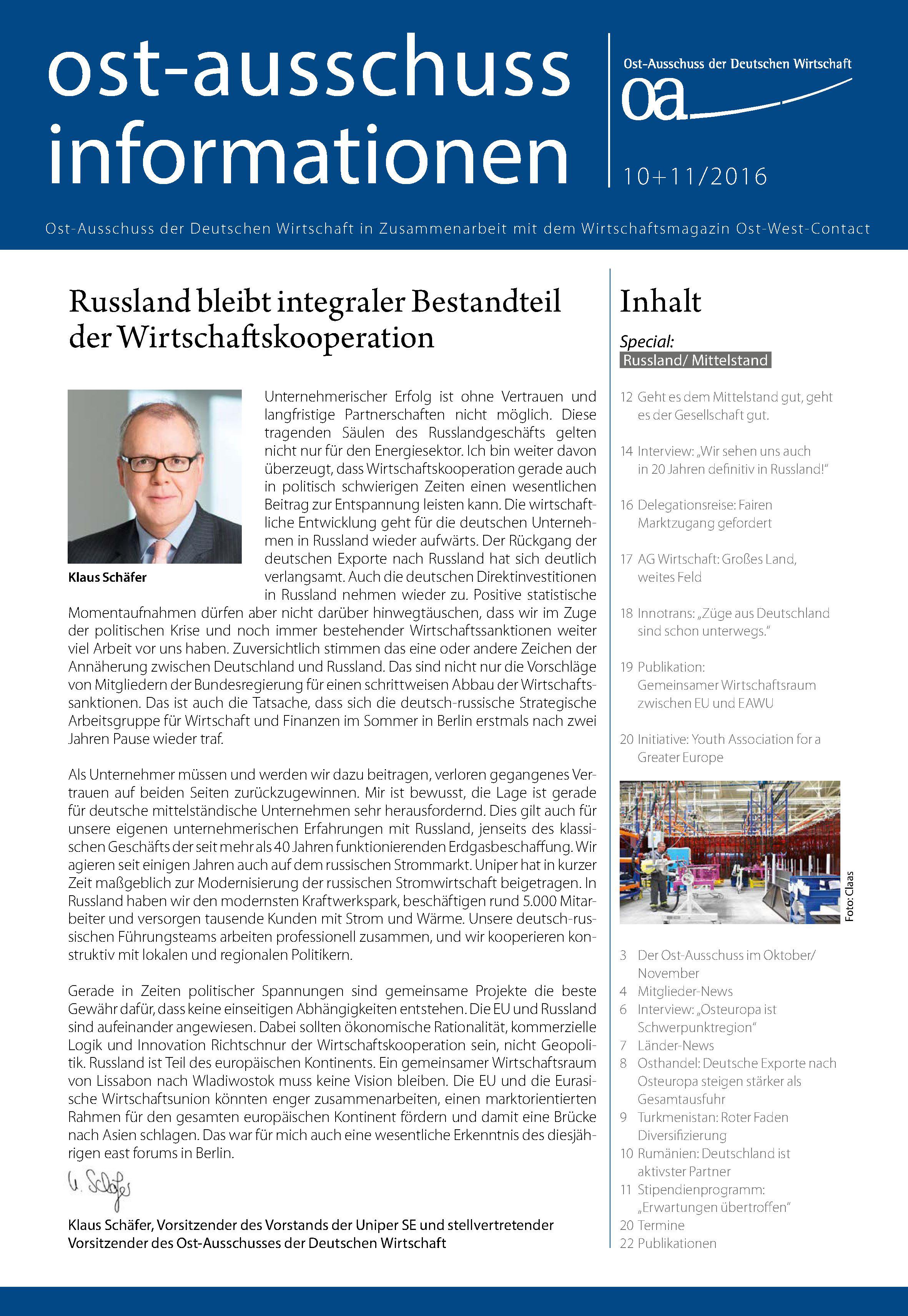 Drei Tage nach den russischen Parlamentswahlen reist Bundeswirtschaftsminister Sigmar Gabriel zusammen mit einer Wirtschaftsdelegation am heutigen Mittwoch nach Moskau. Von Seiten des Ost-Ausschusses der Deutschen Wirtschaft werden Vorstandsmitglied Siegfried Russwurm (Mitglied des Vorstands der Siemens AG), Ost-Ausschuss-Geschäftsführer Michael Harms sowie viele mittelständische Unternehmen der Delegation angehören, die sich für eine Produktion in Russland interessieren. Auf dem Programm stehen dazu unter anderem Gespräche mit dem russischen Industrieminister Denis Manturow und dem Minister für wirtschaftliche Entwicklung Alexej Uljukajew.